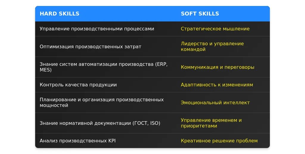 Ключевые навыки, связанные с управлением производством.