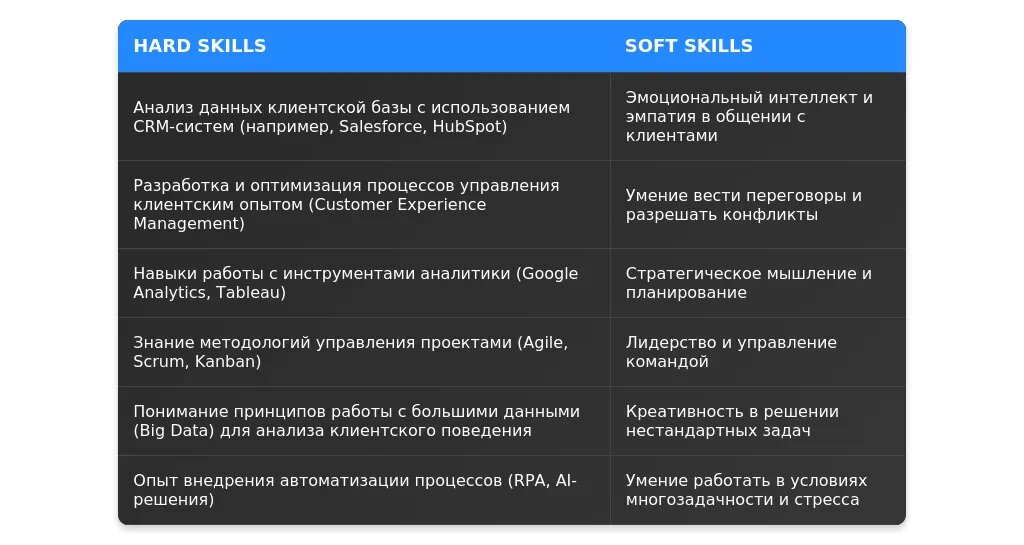Ключевые навыки (например, управление командой, развитие клиентской базы).