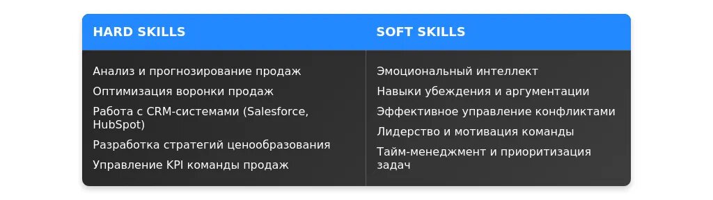 - Ключевые навыки (управление командой, стратегии продаж, анализ данных).