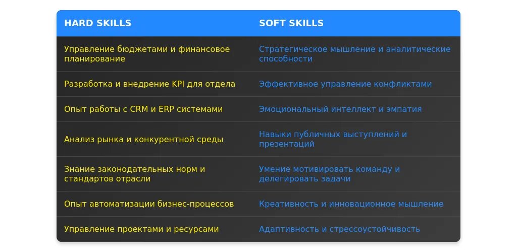После адаптации: "Управление командами до 20 человек, стратегическое планирование, опыт работы с CRM (Salesforce), бюджетирование, аналитика данных."