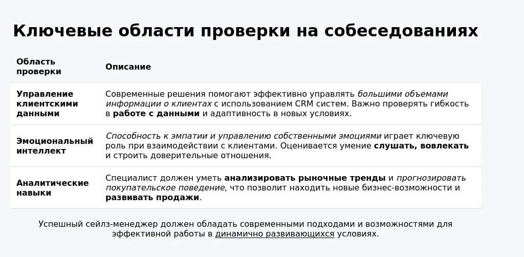 - Эмоциональный интеллект: Оценивается способность кандидата к эмпатии и пониманию потребностей клиентов.