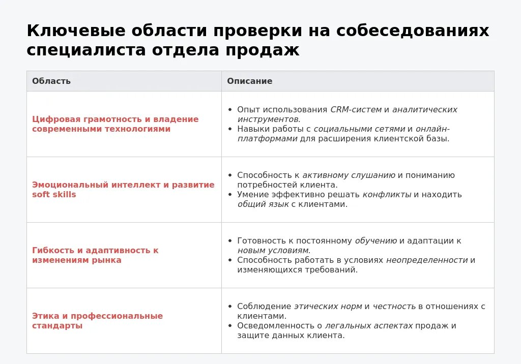Процесс найма специалистов в отдел продаж в 2025 году становится все более ориентированным на оценку soft skills — мягких навыков, которые определяют способность устанавливать контакт и вести эффективные переговоры.