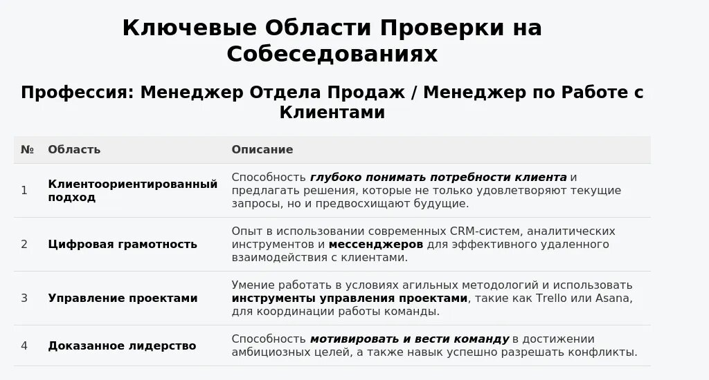 - Эмпатия — умение понимать чувства и потребности клиента, что является важным для успешной работы.