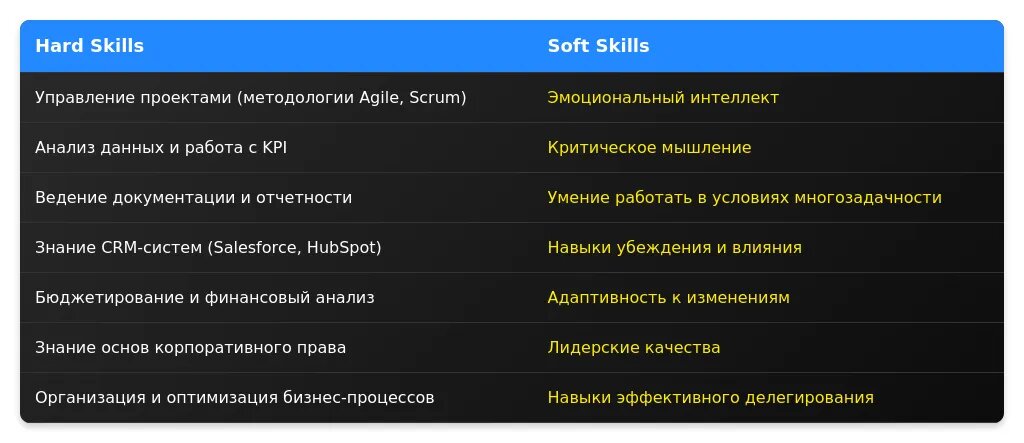 Сильные стороны: упор на навыки коммуникации и организацию.