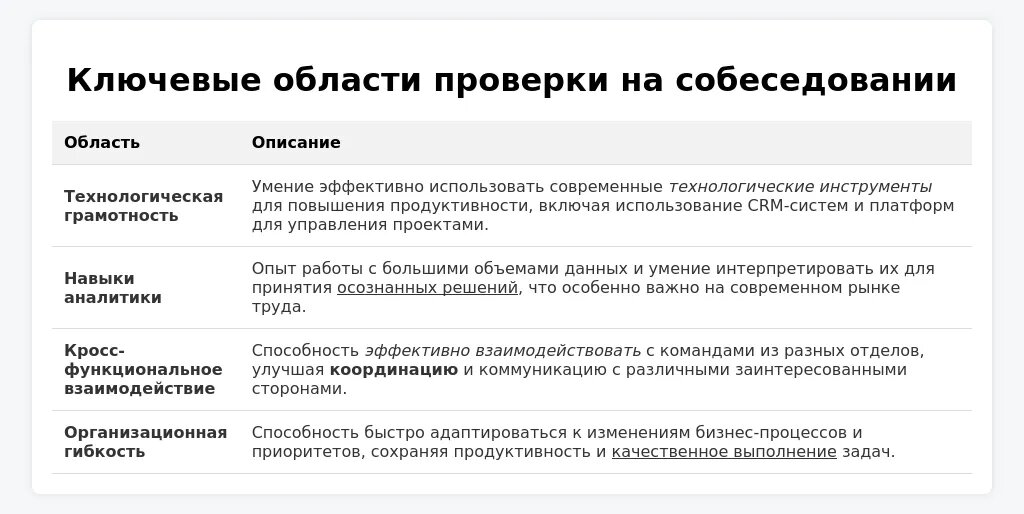 Чтобы стать ассистентом управляющего, важно выявить ключевые soft skills из описания вакансии. Обычно это включает навыки коммуникации, организованность и стрессоустойчивость.