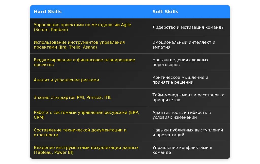 Обязательная информация: ключевые навыки, опыт управления проектами, достижения, профессиональные качества.