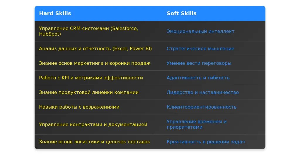 Сильные стороны: управление командой, увеличение выручки, навыки переговоров.