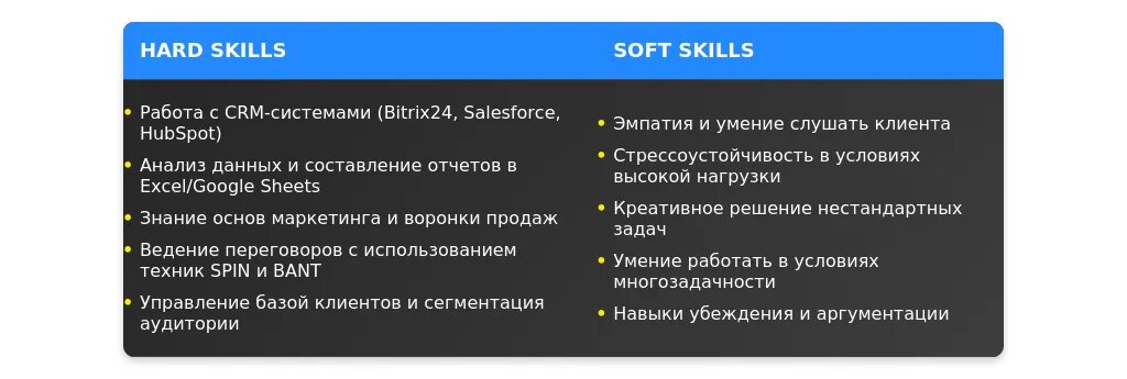 После адаптации: "Навыки работы с CRM (Salesforce, Bitrix24), ведение переговоров, увеличение объема продаж."