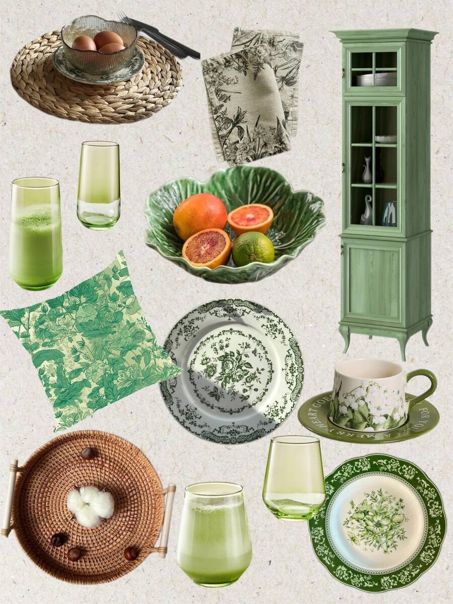 Иногда так хочется добавить в дом немного натуральности, зелени и уюта — и вот тут на помощь приходит правильно подобранный декор. 🌿 Собрала для вас вдохновляющую подборку — здесь и посуда с винтажным настроением, и уютный текстиль, и даже витрина мечты. Всё в зелёных, природных оттенках, которые создают атмосферу спокойствия и свежести. Сохраняйте, если ищете идеи для обновления интерьера! 1️⃣ Винтажная зелёная тарелка — идеально подойдёт для сервировки или декора Артикул WB: 191006532 2️⃣ Керамический салатник "Капуста" — акцентный элемент, который сразу притягивает взгляд Артикул WB: 14891016 3️⃣ Плоская тарелка с цветочным узором — нежная, в духе загородных завтраков Артикул WB: 370852546 4️⃣ Чайная пара: чашка + блюдце — уютные вечера с чайной парой обеспечены Артикул WB: 305523071 5️⃣ Льняные салфетки с цветочным принтом — мягкие, натуральные, с весенним настроением Артикул ЯМ: 596587529 6️⃣ Подушка "Зелёный луг Моррис", велюр — стильный акцент в интерьере Артикул ЯМ: 5317335501