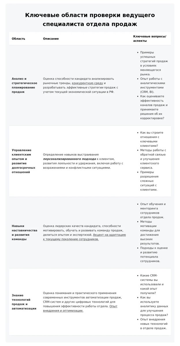 Что оценивают работодатели в ведущем специалисте отдела продаж