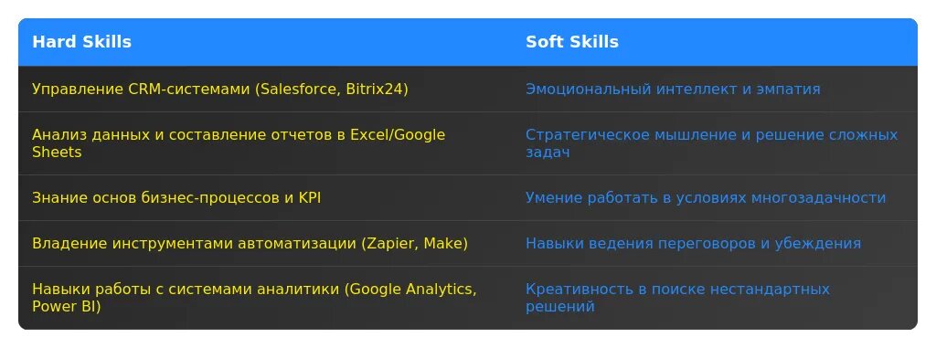После адаптации: "Опыт работы с CRM-системами (Salesforce, Битрикс24), управление ключевыми клиентами, аналитика данных в Excel".