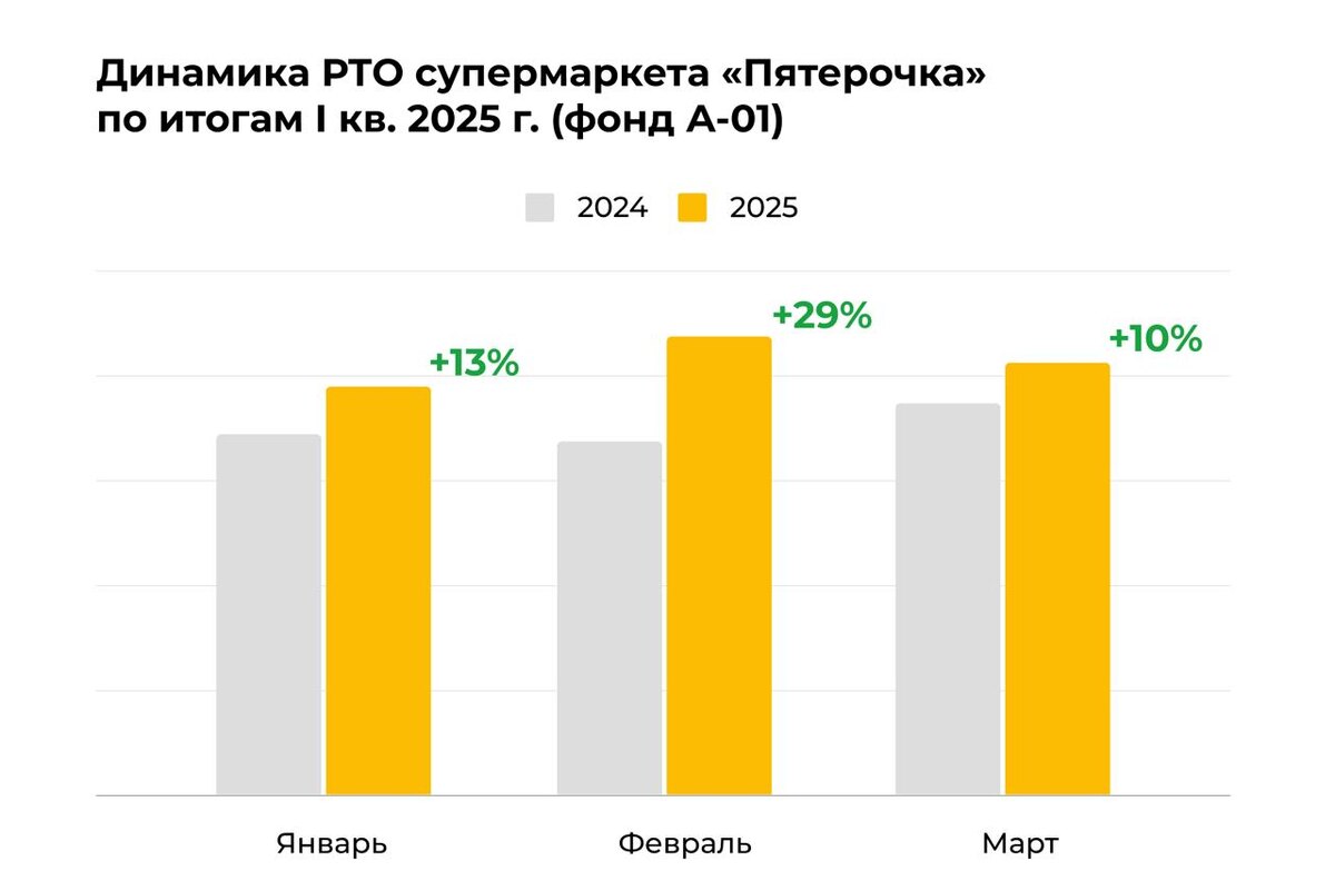 Динамика РТО арендатора «Пятерочка» по итогам I кв. 2025 г. (фонд «Активо один») Прирост розничного товарооборота (РТО) якорного арендатора «Пятерочка» составил +17,6% по итогам I кв. 2025 г. (в сравнении с аналогичным периодом 2024 г.). Прирост связан с увеличением посещаемости объекта, а также с ростом цен на продовольственные и бытовые товары. С арендатором заключен долгосрочный договор аренды с условием ежегодной индексации и уплаты % от РТО. #А01