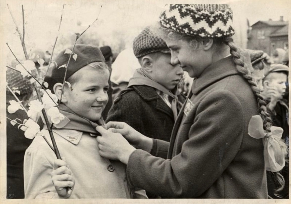 История — это не только даты и громкие события, но и тысячи маленьких ритуалов, эмоций, символов, которые делают эпоху живой. Архивные фотографии — лучший способ почувствовать дыхание времени: здесь и торжественные пионерские линейки, и будничная отвага женщин на заводе, и человеческое тепло среди метели. В этих снимках — всё: и гордость, и радость, и усталость, и надежда. Давайте вместе посмотрим на прошлое без фильтров и прикрас — таким, каким оно было на самом деле. 1. Первый пионерский галстук: важный момент, ставший символом эпохи