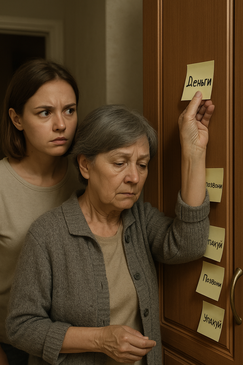 Часы показывали 06:03, когда она проскользнула в коридор. Светлана Николаевна стояла, положив ладонь на стену, спиной к шкафу, и рассматривала свежий стикер — тот самый, с ужасным «Деньги». Лицо у неё было, как старый атлас: дороги-морщинки, равнины округлых щёк, мелкие озёра под глазами. Она тронула жёлтый квадрат, будто боялась, что тот оживёт и укусит за палец. Губы дрогнули, глаза заблестели — вот-вот сорвутся слёзы. И внезапно Марии стало неудобно: тёща совсем не походила на генерала интриг.