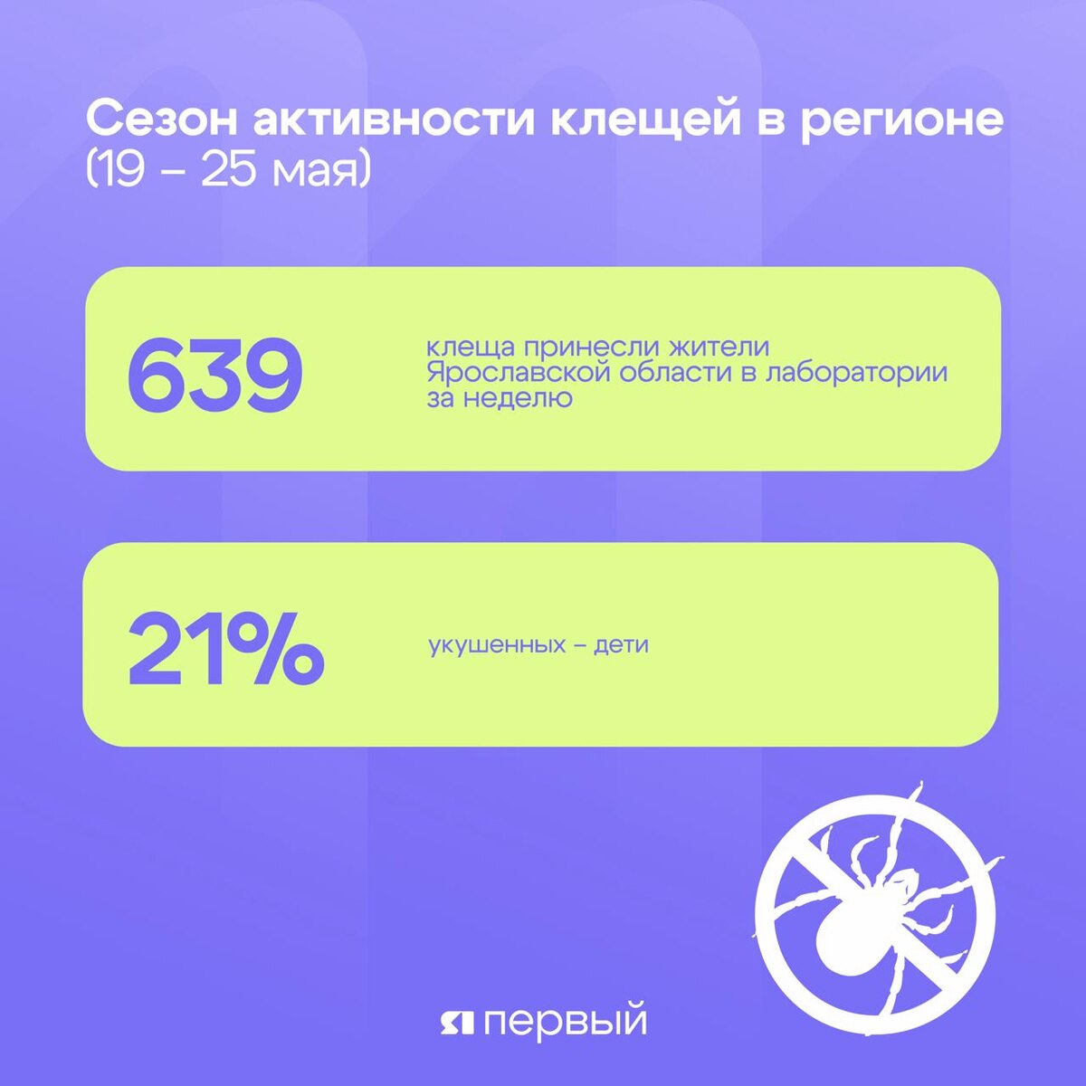 🕷️ В Ярославской области растёт число укушенных опасными паукообразными. Это мы о клещах, сезон которых только начинается! На прошлой неделе (с 19 по 25 мая), по информации регионального Роспотребнадзора, в лаборатории региона принесли более 6️⃣3️⃣9️⃣ штук. Из числа пострадавших – 21% дети. 🔝 В топе по укусам клещей – Ярославль и Рыбинск. Следите за собой, детьми и питомцами! 💚 Подписаться | Прислать новость