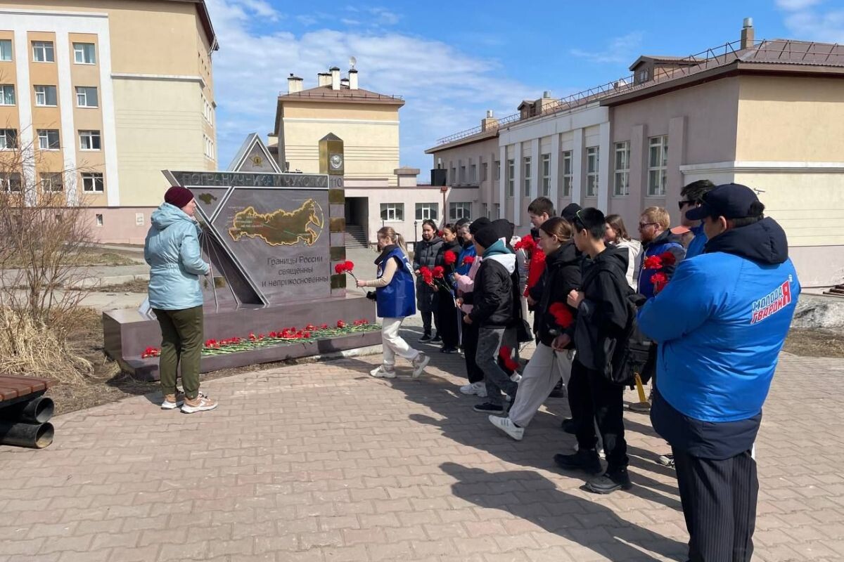 В День пограничника они почтили память военнослужащих, охранявших рубежи России Активисты «Единой России», МГЕР и движения «Волонтёры Победы» возложили живые красные гвоздики к скульптурной композиции «80-летие пограничной службы на Чукотке», открытой в 2021 году в честь 80-летия Кёнигсбергского погранотряда, с которого начиналась погранслужба в округе. Памятник расположен в центре города, близ образовательного учреждения – Чукотского профильного лицея. Минутой молчания они почтили память пограничников, служивших на Крайнем Севере. «Сотрудники пограничной службы контролируют тысячи километров государственной границы России, в том числе в арктической зоне нашего государства. В связи с этим памятник пограничникам, установленный в нашем городе, важен в сфере патриотического воспитания детей и молодёжи. Не случайно у этого мемориала проводятся молодёжные акции, сюда на экскурсии приводят дошкольников и школьников. В День пограничника мы вместе с участниками разных общественных организаций,