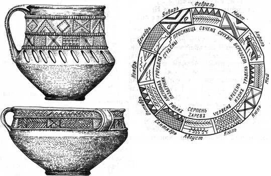 Время — величайший учитель, который никогда не устает шептать свои секреты тем, КТО ГОТОВ их услышать. Среди этих загадок особое место занимает Славянская чаша-календарь, найденная неподалёку от деревни Лепесовка. Этот артефакт, восходящий к древним временам, охватывает всю глубину славянской культуры и понимания года как цикла. #### Историческая находка Чаша, обнаруженная археологами, представляет собой плоский венчик, разделённый на 12 прямоугольных секций, каждая из которых уникальна в своём оформлении. Эти секции, возможно, символизируют 12 месяцев, образующих годовой круг. Но это не просто "график" — это знак тонкого понимания времени, природы и жизни, которым обладали древние славяне. #### Осмысление и символика Этот календарь — не просто украшение, а сложная система обозначений и знаков, отражающих циклы природы и хозяйственной деятельности наших предков. - Три сектора с косым крестом символизировали солнце и пламя — важнейшие стихии жизни. Они соответствовали январю, марту и и