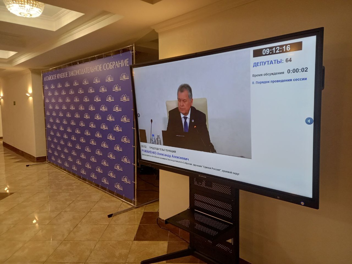 На сессию зарегистрировались 64 депутата. В работе принимает участие депутат Государсивенной Думы, первый секретарь Алтайского крайкома КПРФ Мария Прусакова.