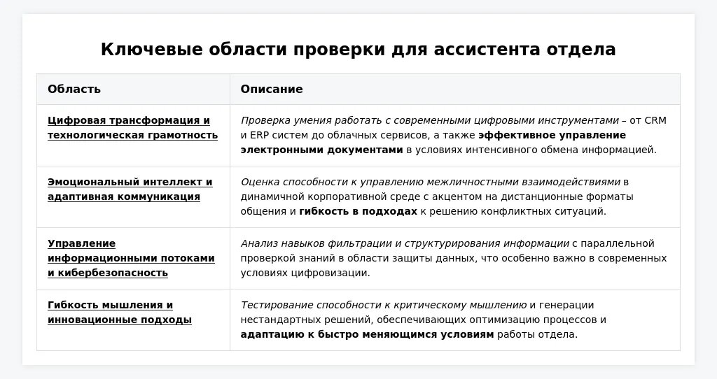В 2025 году процесс найма на позицию ассистента отдела становится все более конкурентным. Работодатели уделяют особое внимание soft skills, особенно коммуникативным навыкам. Важно, чтобы кандидат демонстрировал следующие ключевые компетенции: