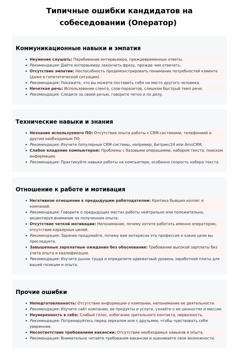 Типичная ошибка: кандидат не может четко сформулировать, какие действия он предпринял и какой результат получил. Важно говорить конкретно и по делу.