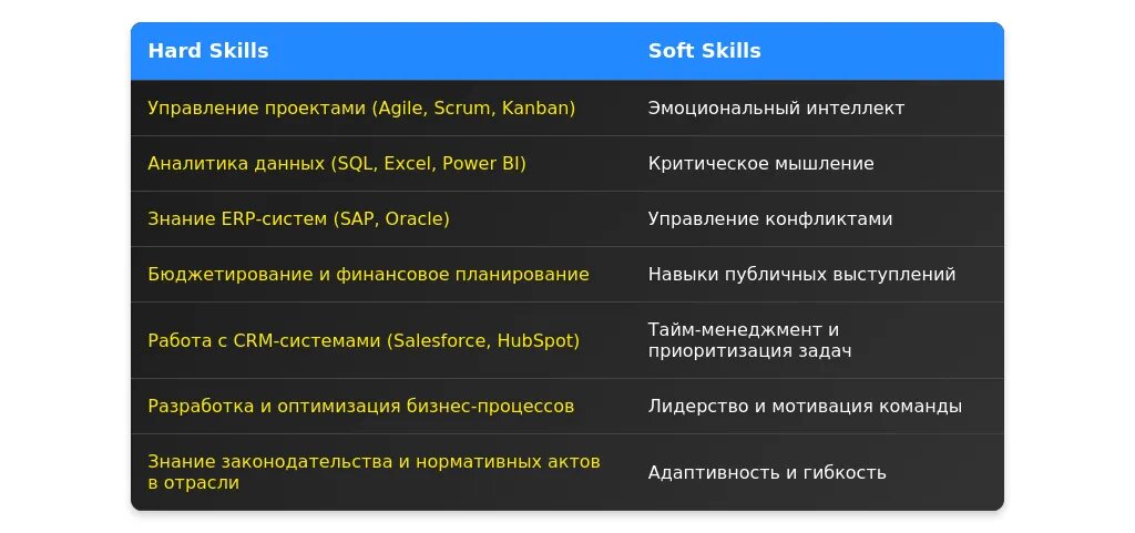 После адаптации: "Навыки: бюджетирование, работа с CRM, управление проектами, продвинутый Excel."