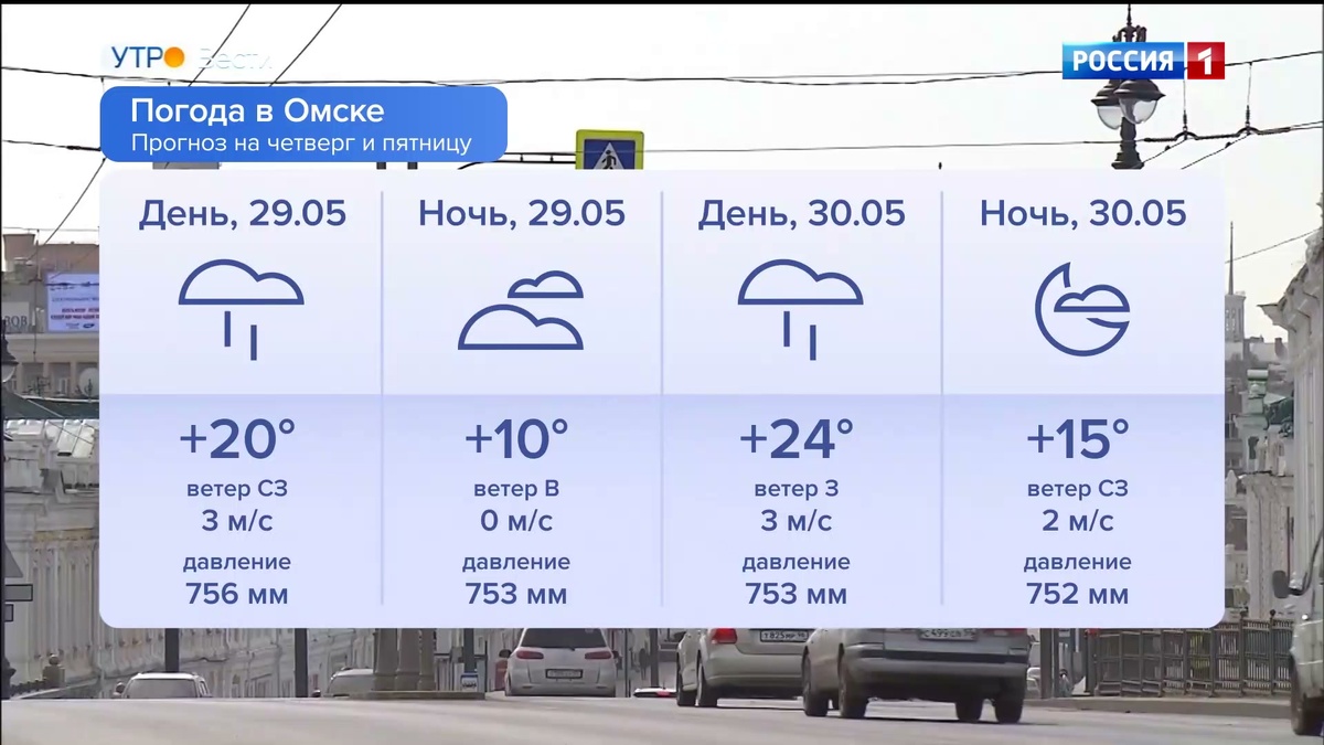 Сегодня, 29 мая, в Омске днём потеплеет до +20 °C. Ожидается небольшой дождь и ветер с северо-запада до 3 м/с. Ночью станет прохладнее — около +10 °C, осадков не прогнозируют. В пятницу, 30 мая, днём температура поднимется до +24 °C. Пройдёт дождь, ветер западный, до 3 м/с. К ночи немного похолодает — до +15 °C, небо прояснится.