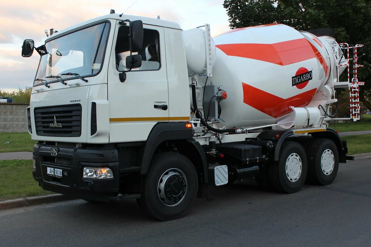 Ведущие производители автобетоносмесителей из Беларуси и России продолжают укреплять свои позиции на рынке благодаря надежности и конкурентоспособной стоимости. В условиях импортозамещения белорусские автобетоносмесители, такие как продукция МАЗ, активно поставляются в РФ. Минский автомобильный завод крупнейший производитель грузовой и спецтехники в Беларуси. Выпускает автобетоносмесители на шасси собственного производства (например, МАЗ-4570, МАЗ-5432). Техника отличается надежностью, адаптирована к работе в СНГ и Восточной Европе. Экспортируется в Россию, Казахстан и другие страны. 9DA 69365M и 9DA 69365L — базовые модели с объемом барабана 9 м³. ABS-7DA — модель с объемом 7 м³, цена от 4.7 млн руб. · Технические характеристики: o Объем барабана: 7–10 м³ (в зависимости от модификации). o Скорость вращения барабана: до 14 об/мин. o Скорость выгрузки: 1 м³/мин. o Двигатель: Ярославский моторный завод (например, Д-260.1). o Температурный диапазон: от −30 до +40°С. o Шасси: 6×4, грузопод