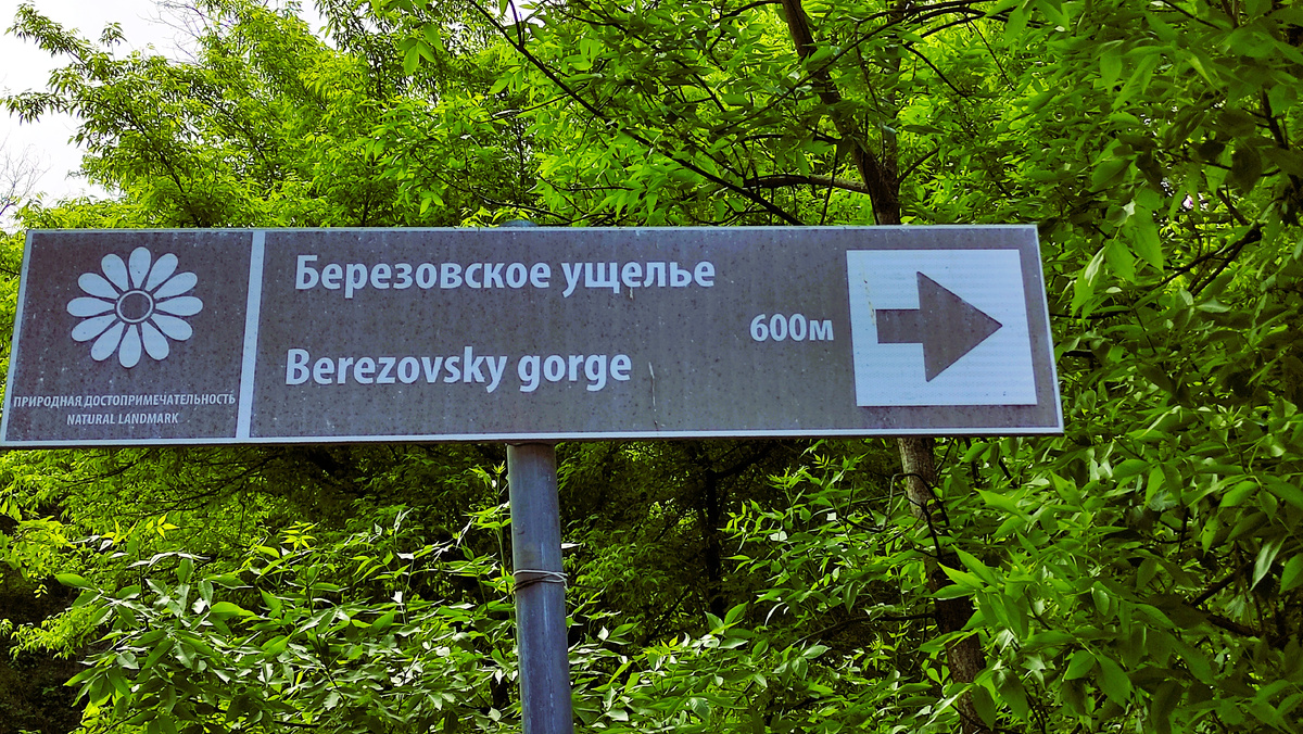 Снова спускаемся по улице Суворова вдоль маленьких белых домов и вдруг видим указатель «Берёзовское ущелье» — 600 метров. Любопытно же. Решили, что пройдем эти полкилометра, полюбуемся на ущелье и вернёмся назад.
