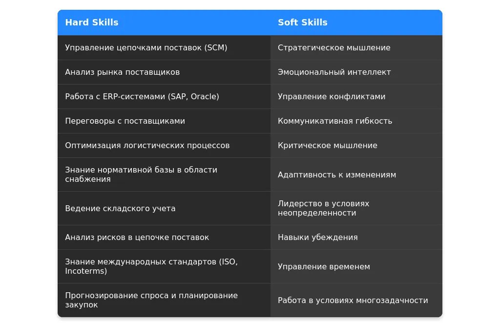 ✅ Коммуникабельность: налаживание долгосрочных отношений с поставщиками.
