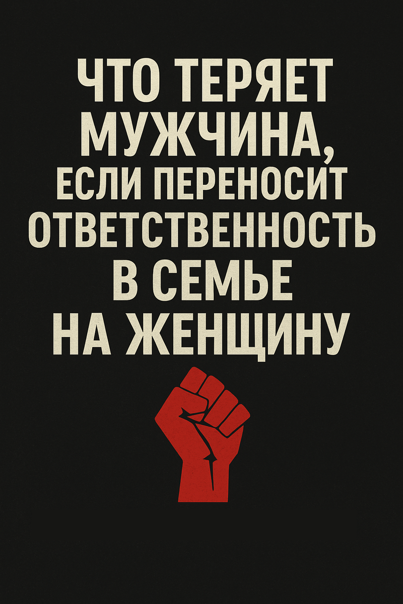Когда мужчина в семье скидывает ответственность на женщину, он теряет не роль. Не статус. Не авторитет. Он теряет себя. Свои тестикулы. Свой позвоночник. Свою возможность когда-либо сказать: я мужчина. И чтобы это не прозвучало, как хриплый всхлип по пути в Пятёрочку за пивом и сигаретами.