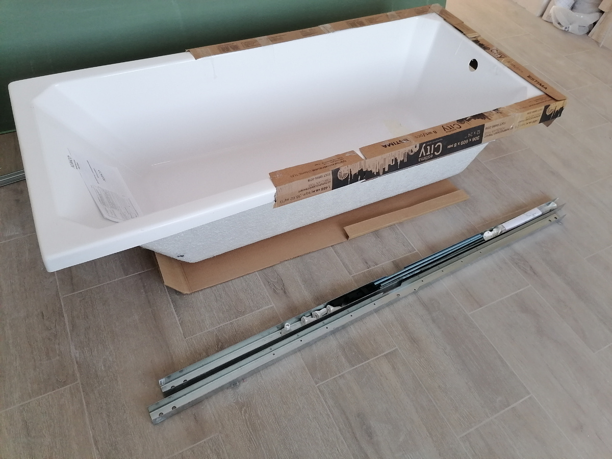 Отделка и коммуникации в доме могут составлять 50% (а то и больше) от затрат на строительство самого дома. Об этом я подробно на своем примере показывал в этой статье: Когда хочется снизить затраты – делаешь многое своими руками. Но кроме этого, стараешься приобрести и материалы со скидкой. В этом нам помогают маркетплейсы. В частности, я многое что по мелочи приобретаю на Озон. Не нужно ездить, искать, но перед приобретением проверяю цены на сайтах строительных магазинов. Но никогда на Озоне не приобретал крупногабаритные товары, которые можно заказать с доставкой курьером. При отделке ванной комнаты решил рискнуть и заказать акриловую ванну. У меня редкий размер большой ванны, 180х80 см. Стандартный 170х70 см не подходил из-за того, что розетку под воду я смонтировал для угловой ванны с размером одной стороны 80 см (кран посередине). А она слишком дорогая. Нашел на Озоне ванну под мой размер с ценой 17 тыс. руб. А в магазине такая – от 35 тыс. и выше. Плюсом в комплекте идет каркас.