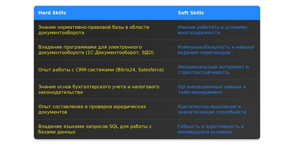 После адаптации: "Знание MS Office, опыт работы с CRM-системами, оформление юридических документов."