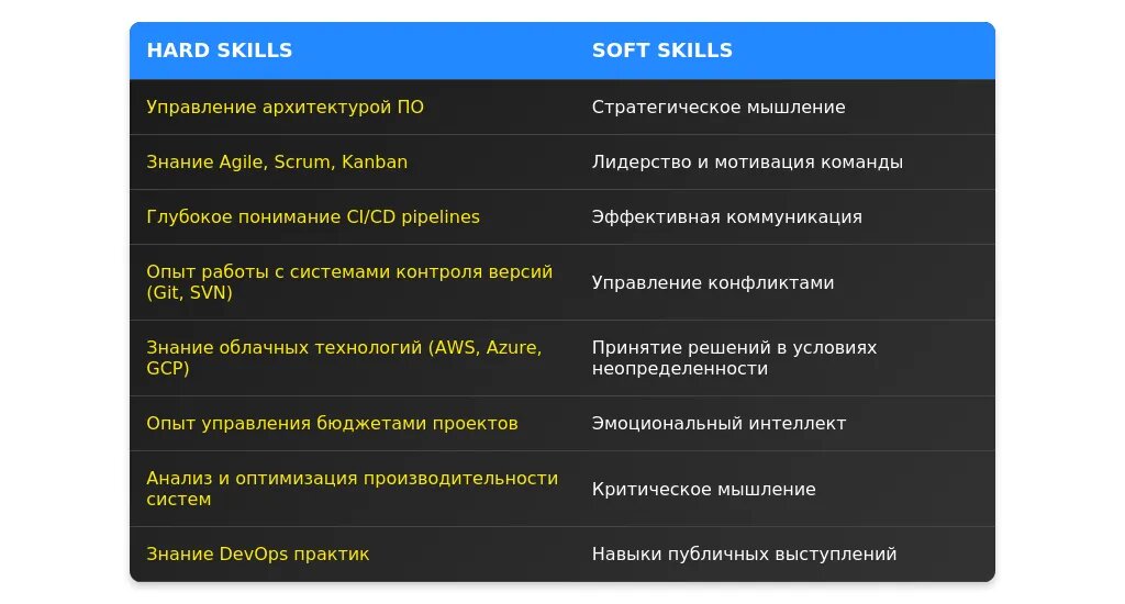 Технические навыки для начальника отдела разработки