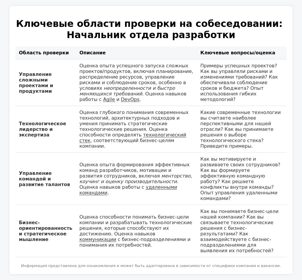 Этапы собеседования на должность начальника отдела разработки в 2025 году