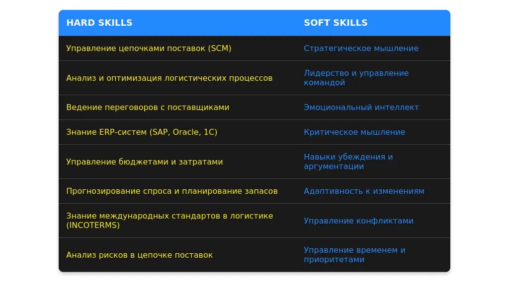 Пример до адаптации: "Навыки переговоров, логистика, закупки."