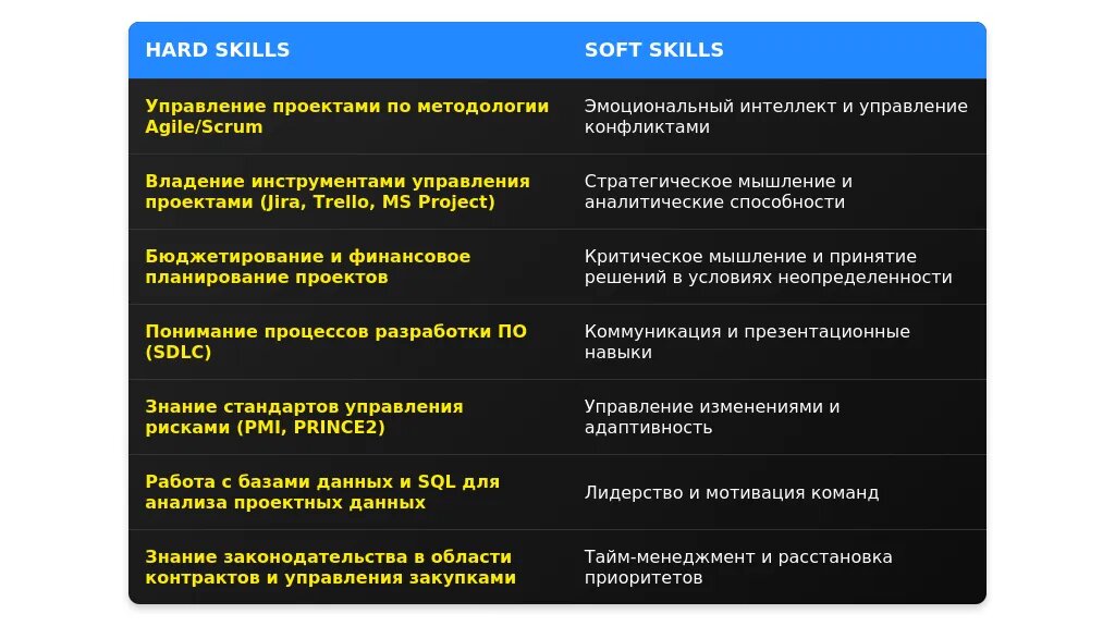 - Стрессоустойчивость: управление проектами в условиях сжатых сроков.