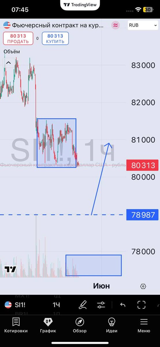 Доллар рубль. Продавать не предлагаю, на усмотрение каждого, а вот начать среднесрочные покупки от 79000 очень даже рекомендасьон. Бальшим пасанам на среднем срок лучше задействовать 9.25 с перспективой перекладки в следующий в районе ста.