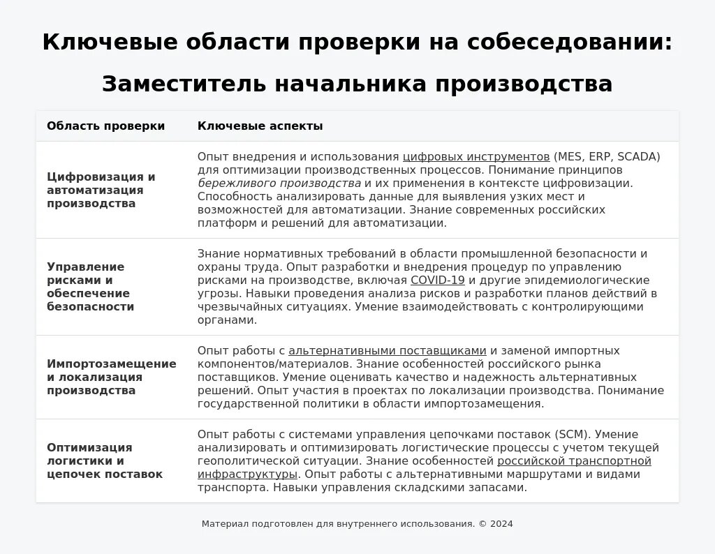Процесс трудоустройства на позицию заместителя начальника производства в 2025 году стал более структурированным и ориентированным на глубокую оценку компетенций.