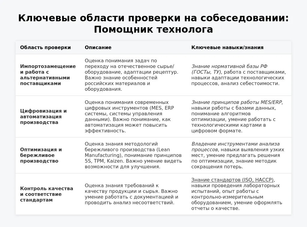 Собеседование на должность помощника технолога: от подготовки до трудоустройства