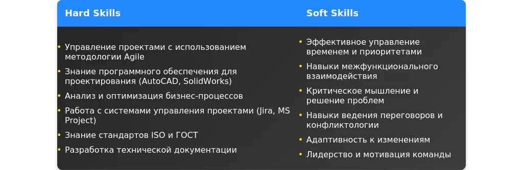 После: "Навыки: ведение переговоров с подрядчиками, координация команд, подготовка технической документации."