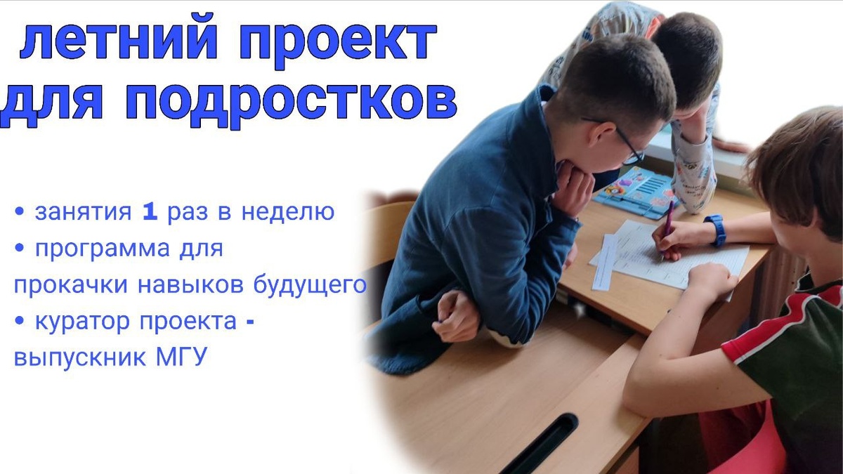 🔥 ЛЕТНИЙ ПРОЕКТ ДЛЯ ПОДРОСТКОВ: СТАРТ 3 ИЮНЯ! Всего 10 мест — успевайте забронировать место! 🎯 ЧТО ВАС ЖДЁТ? • Занятия 1 раз в неделю (по 90 минут, начало в 17:15). • Программа для прокачки навыков будущего: — Искусство дискуссий и командной работы. — Анализ информации и креативное мышление. — Создание личного плана развития. — Практика! Подростки проведут мини-занятия под кураторством (да, это реально!). 👩🏫 КУРАТОР ПРОЕКТА — ОЛЬГА ВИКТОРОВНА • Выпускница филфака МГУ (красный диплом). • 13 лет руководила детским лагерем «Робин Гуд». • Сертификаты: ICCC (управление командами), геймификация в образовании. • Поможет раскрыть потенциал, поставить цели и достичь их! ❗ ПОЧЕМУ СТОИТ ИДТИ ИМЕННО К НАМ? — Только 10 участников — персональный подход для каждого. — Сертификат по окончании курса. — Цена: 8400 руб. за 4 занятия (полный курс июня). 📍 КАК ЗАПИСАТЬСЯ? Напишите «Хочу в проект» в WhatsApp: 7967021-44-11 Или перейдите по ссылке P.S. Всего за месяц ваш