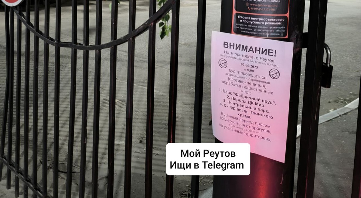 ‼️Жителей просят воздержаться от посещения парков, в том числе с собаками 2 июня в связи с планируемой антиклещевой обработкой. Соответствующие объявления развесили в городских парках Обрататывать будут: 1. Парк "Фабричный пруд". 2. Парк за ДК Мир. 3.Центральный парк. 4. Сквер возле Троицкого храма. 🤩 Подписаться | Прислать новость | ВКонтакте | Дзен | Чат