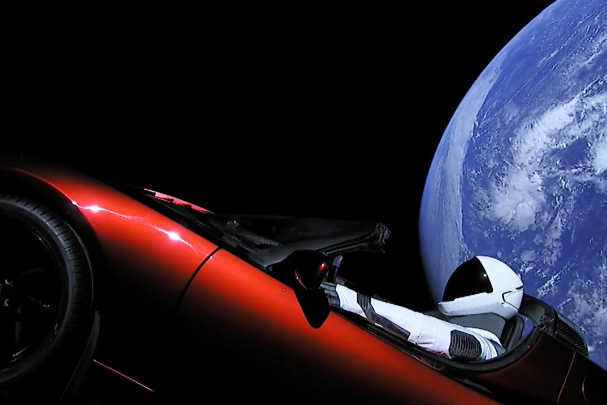 Илон Маск однажды решил, что запуск его личного автомобиля Tesla Roadster в космос во время тестового полета SpaceX будет «забавной» идеей. Это произошло в феврале 2018 года, когда SpaceX проводила испытательный запуск ракеты Falcon Heavy с вероятностью успеха всего 50%. Вместо стандартного тестового груза Маск выбрал свой красный Tesla Roadster, чтобы сделать эксперимент «максимально интересным». В машине, отправленной в космос, находится манекен в скафандре SpaceX, сидящий за рулем, книга Дугласа Адамса «Автостопом по галактике» в бардачке и игрушечная модель Tesla Roadster от Hot Wheels на приборной панели. На борту также непрерывно играет песня Дэвида Боуи «Space Oddity».