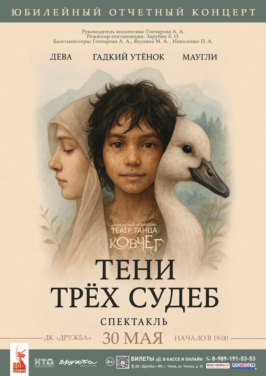 ✨ Юбилейный концерт Образцового коллектива «Театра танца «Ковчег» Одна сцена — три сильные истории: «Гадкий утёнок», «Маугли», «Дева» — о преображении, борьбе и внутренней свободе. 💖Будет красиво. 🎉Будет неожиданно. Билеты в кассе ДК 🚫 Возраст: 6+ 📆 30.05.2025 🕛 19:00 🏢 ДК «Дружба» 📍 г. Чехов, ул. Чехова, д.45 💰 Цена от: 200 до 400 ₽ ✅ Мероприятия Чехов https://dzen.ru/id/66cc4b48e9ef144699238a51 http://vk.com/chekhov_events http://dzen.ru/chekhov_events