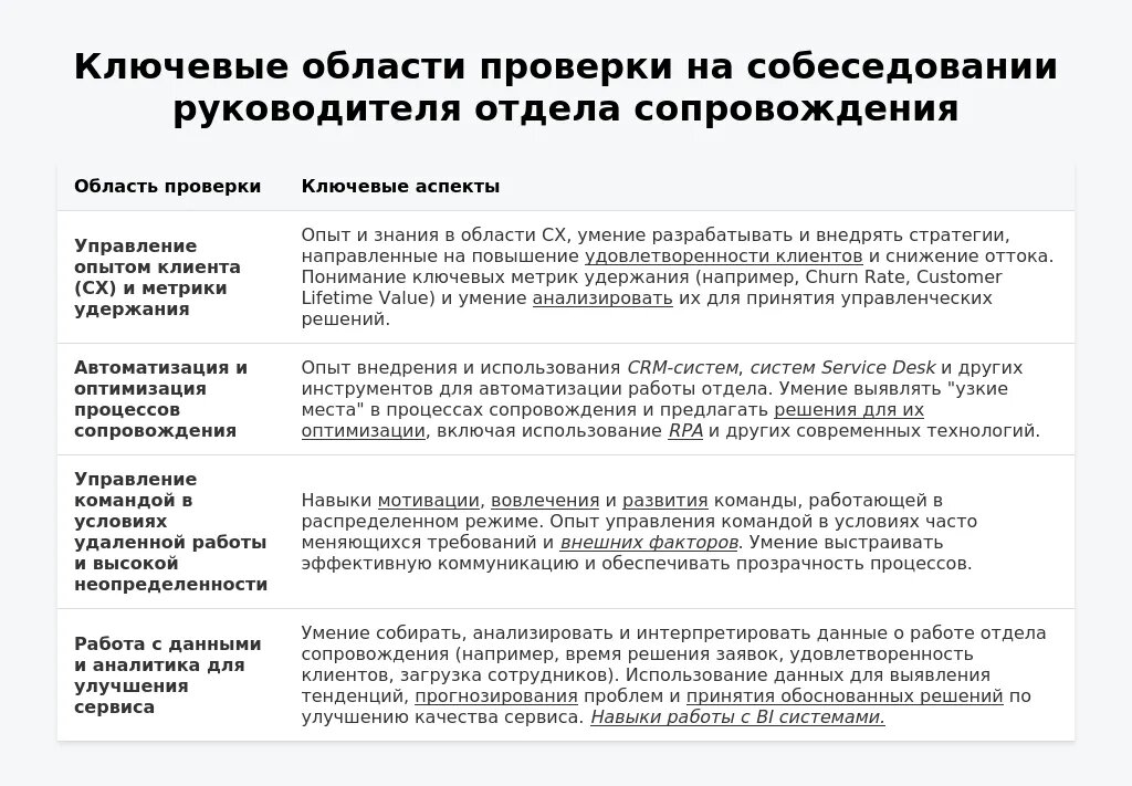 Оцените свой уровень подготовки, отвечая на типичные вопросы для собеседования на должность руководителя отдела сопровождения.