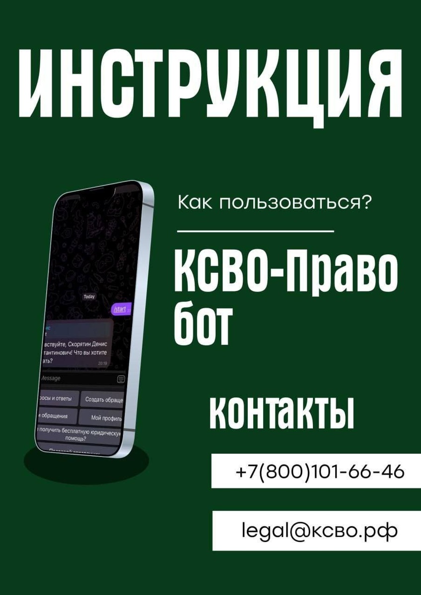 Создана инструкция по пользованию ботом «КСВО-Право». Она поможет заявителям сразу при регистрации понять, как получить помощь.