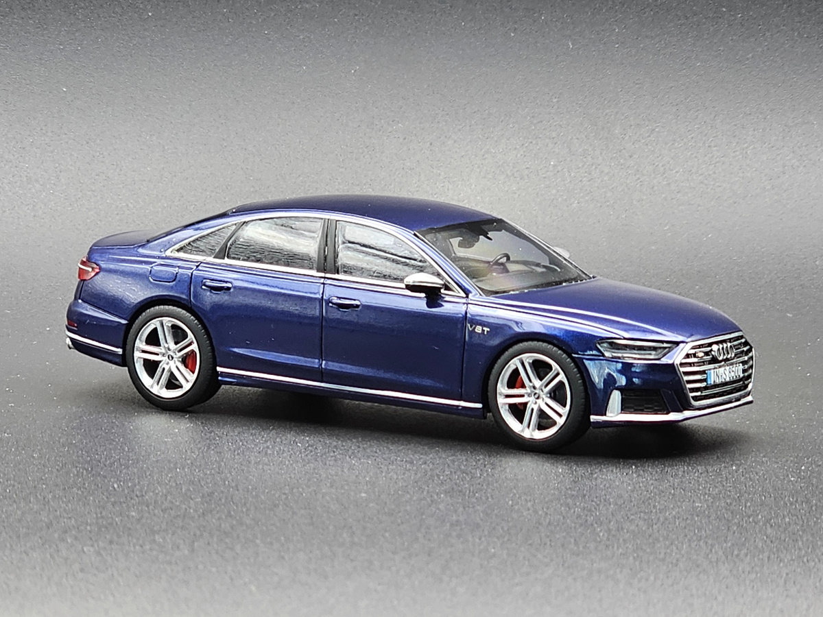 Модель AUDI S8 2019 в диллерском исполнении выпустила фирма Paragon (она Jadi). Масштаб 1/43. Цвет синий металлик. Материал смола. Каталожный номер 5011818131. Тираж 999 экземпляров.