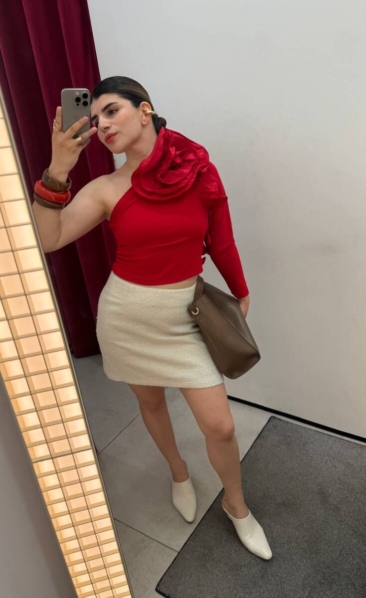 Влезла в свой старый топ Zara и радостная приехала на обзор 🌹 На обзоры обычно беру с собой обувь и аксессуары, чтобы сделать в своем стиле, поэтому сумку не совсем комплиментарную образу взяла, но в этом тоже что-то есть