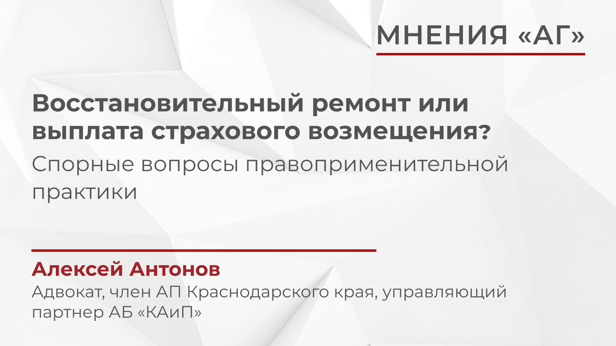Мнения «АГ» // Восстановительный ремонт или выплата страхового возмещения?