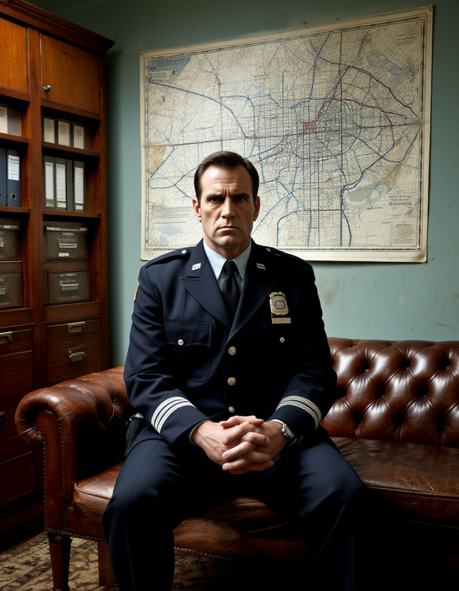 Кабинет капитана Григория Петровича Громова, который вел дело Сержа, был холодным и почти стерильным. Карта города на стене, несколько металлических шкафов с делами, потертый кожаный диван в углу. За столом сидел суровый, как бетонная плита, сам Громов. Высокий, плечистый, с квадратной челюстью, густыми бровями и низким басом.